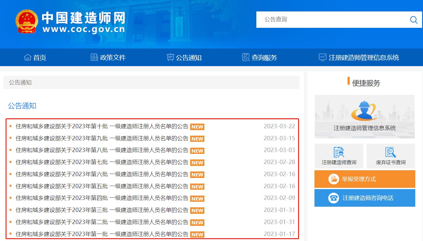 截止目前,中国建造师网已公布2023年一级建造师注册人员名单共10个批次,共涉及83550名一建执业人员,这10个批次新增注册人员3723人,增项注册1388人。