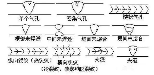 17、 放大镜或肉眼检查:1气孔2裂纹3咬边4夹渣