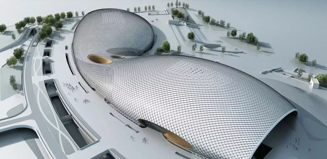 米,包括体育馆、游泳馆、商业设施和停车设施。建筑形态分为上、下两个部分。下部是商业设施和停车场,上部是体育场和游泳馆。上部放置了一个巨大的非线性
