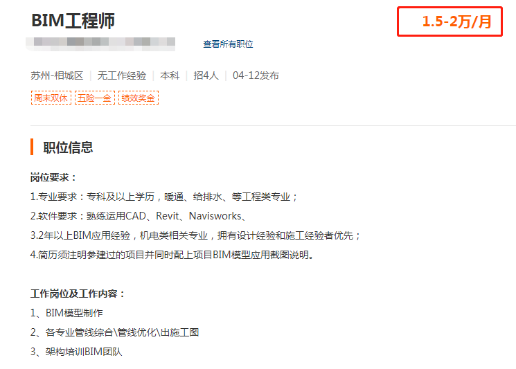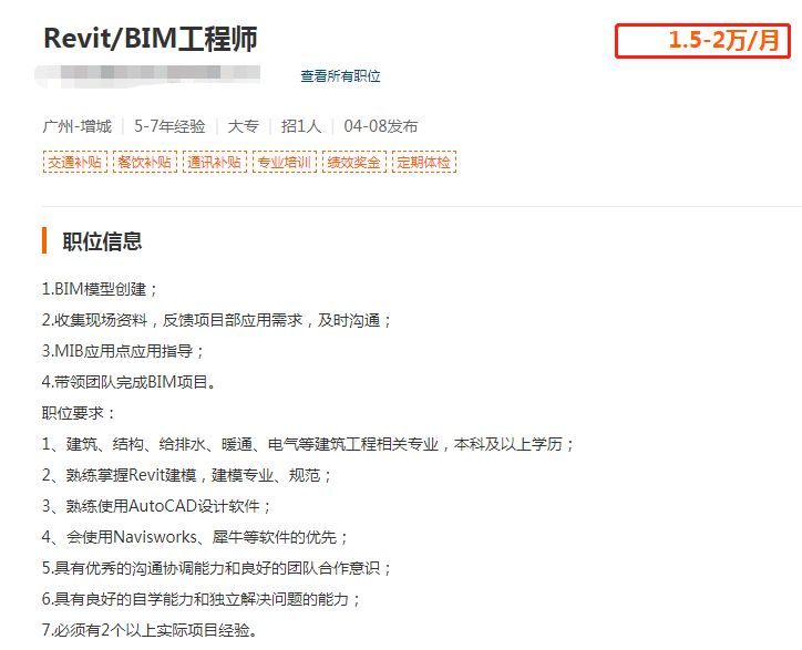 从某招聘网站中,更能看到单位对于BIM工程师的渴求程度,考取全国BIM等级证书,对于很多单位来说,这样的员工成为优先录用对象。
