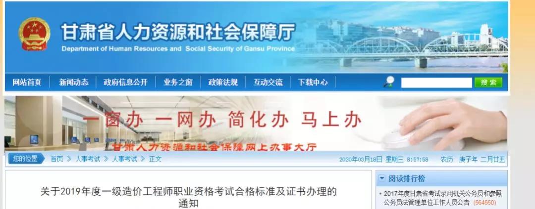2019年一级造价工程师考试已经进入证书领取阶段,近日,甘肃省人社厅发布了关于2019年度一级造价工程师职业资格考试合格标准及证书办理的通知,其中明确了2019年一级造价师证书领取办理实行“邮寄办、网上办”服务。