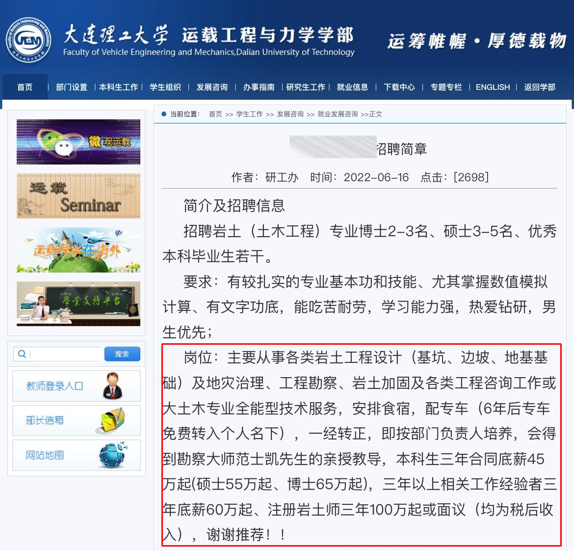 8.公司拿3年60万噱头在大连理工大学、山东建筑大学、武汉科技大学、湖北工业大学等学校就业网,各种宣传,希望刚毕业大学生要注意。