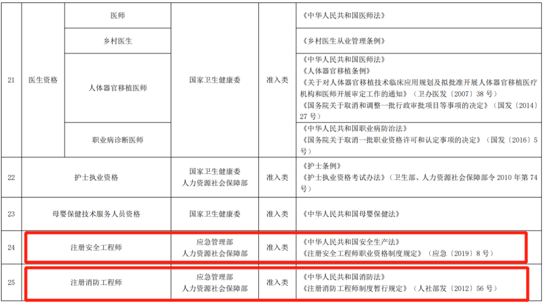 人社部最新公布了《国家职业资格目录(2021年版)》,共计72项职业资格,与2017年相比,在职业资格减少了68项,压减比例达49%的情况下,消防工程师依然属于国家准入类证书(目录之外一律不得许可和认定职业资格, 目录之内除准入类职业资格外一律不得与就业创业挂钩!)。